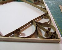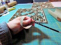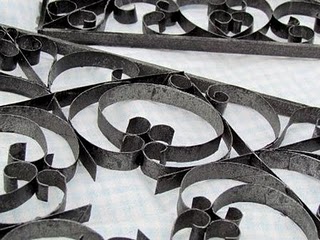 A seguir,  para os detalhes em curva, enrole as pontas das tiras no cabo de um pincel , faça todas as peças da mesma forma  e depois aplique conforme o desenho que vai usar